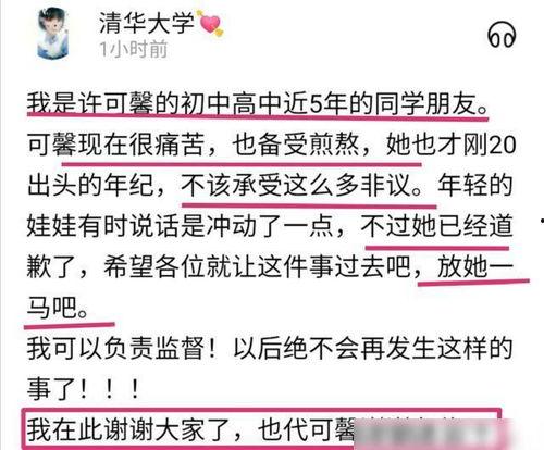 在说最新爆料之前,我们先来简单了解一下许可馨。许可馨,一个年轻的女孩子,因为其在社交媒体上的言论而广受关注。她曾因发表一些敏感言论而引起争议,但也有人认为她只是敢于直言的人。不管怎样,这次她的新爆料无疑又让她的名字成为了热门话题。